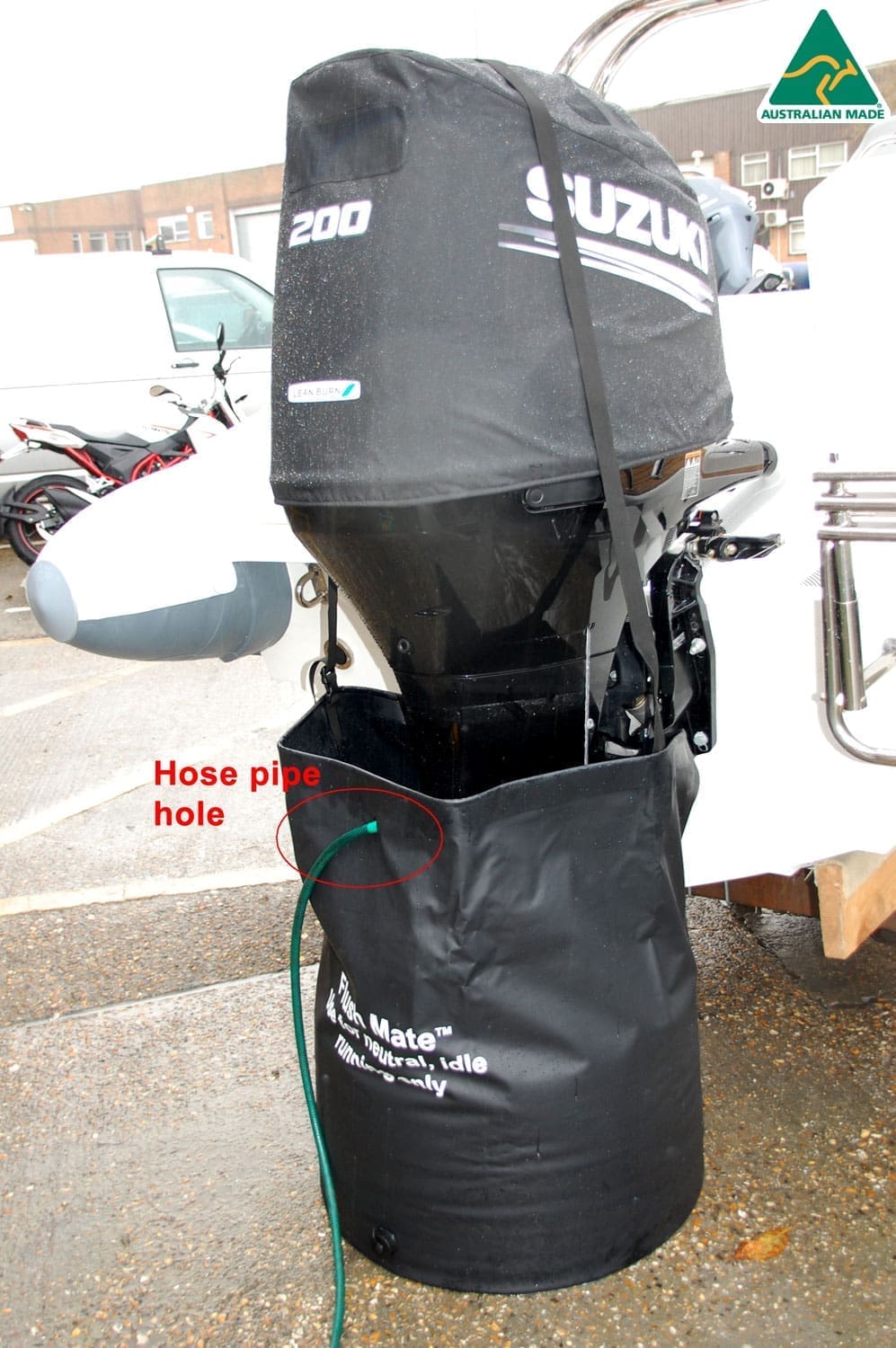Flush Mate™ outboard motor flush bags are for use on most outboard motors with standard legs (no extras added like fins). Please check your motor size as the motor hp below is only an indication.